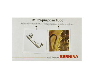 С помощью лапки Bernina для выпушки, бисера и блесток можно с легкостью выполнить нашивание шнурков, бисерных нитей и блесток. Направляющий желобок и открытый направляющий канал служат для направления ниток бисера и блесток и канта.
