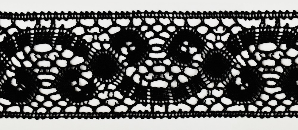Тесьма кружевная Mauri Angelo, 61 мм (арт. 5021/009). Состав: 100% хлопок. Цвет: черный. Ширина: 61 мм.