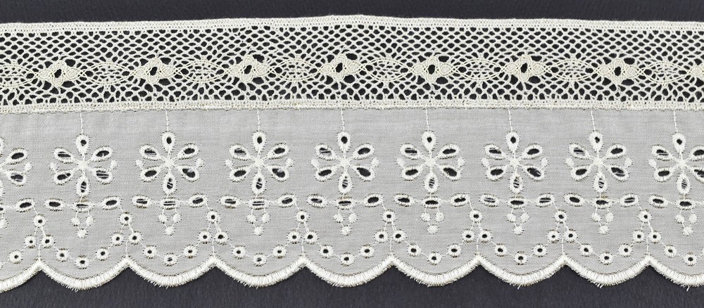 Тесьма кружевная Mauri Angelo, 95 мм (арт. 539/17018/LI). Состав: 95% хлопок 5% вискоза. Цвет: льняной. Ширина: 95 мм.