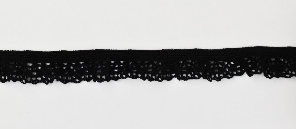 Тесьма кружевная Mauri Angelo, 13 мм (арт. R7273EL/PL/410). Состав: 85% полиэстер + 8% полиамид + 7% эластан. Цвет: черный. Ширина: 13 мм.