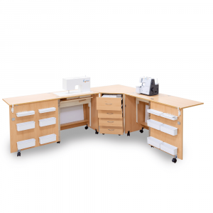 Швейный стол Комфорт-6L – наверно, самый устойчивый, комфортный и вместительный, а также легко трансформируемый швейный центр, который позволяет организовать рабочее место швеи. В столе предусмотрено место для хранения и использования швейной машины и оверлока. Кроме того, есть место для раскроя ткани. Благодаря 3-уровнему пневмолифту можно без труда установить его в нужное положение. На открывающейся дверце имеются лотки для швейных принадлежностей.