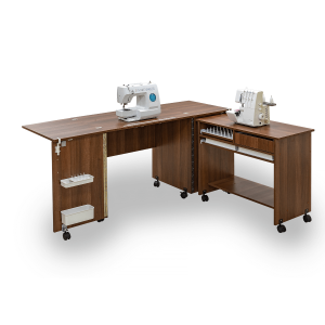 Швейный стол Комфорт-7 для тех, кто ценит соотношение цены и качества. В отличие от других моделей, в столе отсутствует лифт для подъема швейной машины, но несмотря на это, данная модель не утратила своей функциональности и удобства. Для хранения различной швейной фурнитуры, в столе предусмотрены 2 выдвижных ящика и навесные ящики из пластика. В последней модификации в тумбу стола добавлена дополнительная подставка для катушек и 2 секционных контейнера.