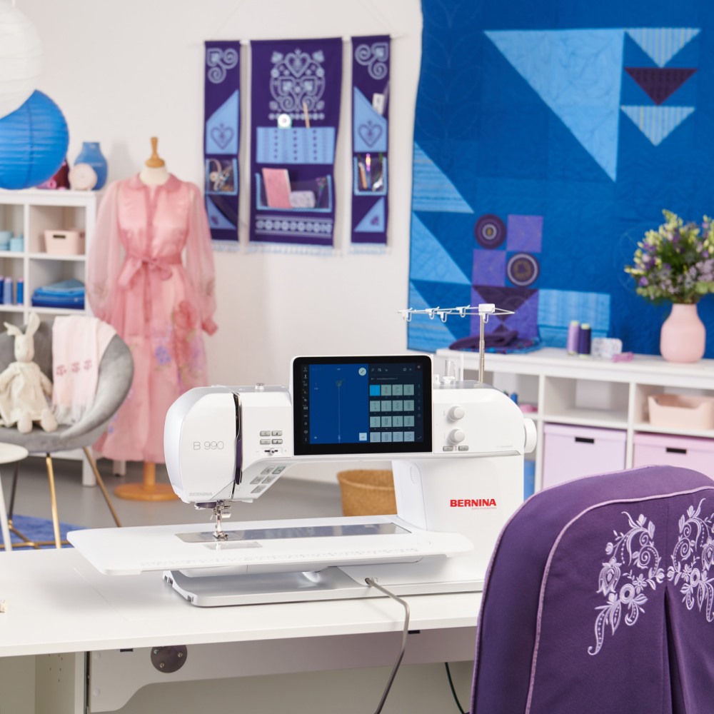 BERNINA 990 — это современная швейно-вышивальная машина премиум-класса с просторным рабочим пространством 356 мм справа от иглы и интуитивно понятным сенсорным экраном 10,1 дюйма с управлением жестами. Машина оснащена новым сканером, встроенной камерой и лазерной системой позиционирования BERNINA Pinpoint, которая позволяет точно размещать узоры и контролировать процесс стежки прямо на экране.