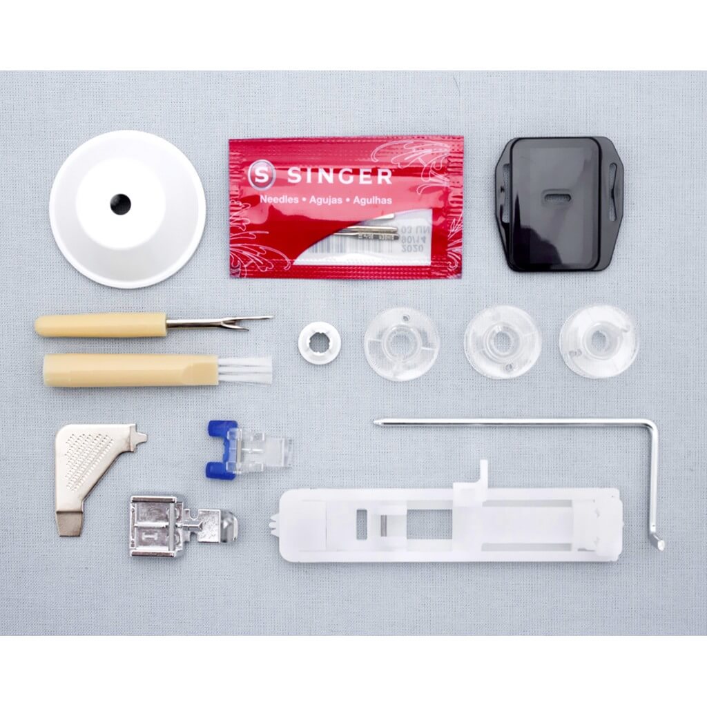 Singer Simple 3221 – простая и надежная электромеханическая швейная машина с вертикальным челноком. В ее распоряжении полный набор рабочих строчек, а также регулировки длины стежка и ширины зигзага. Для качественной закрепки шва используется функция реверса.