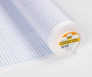 Фиксируемая прокладка с нанесенной квадратной сеткой для пэчворка с нанесенными голубыми линиями под углами 90°. Подходит для всех видов тканей.